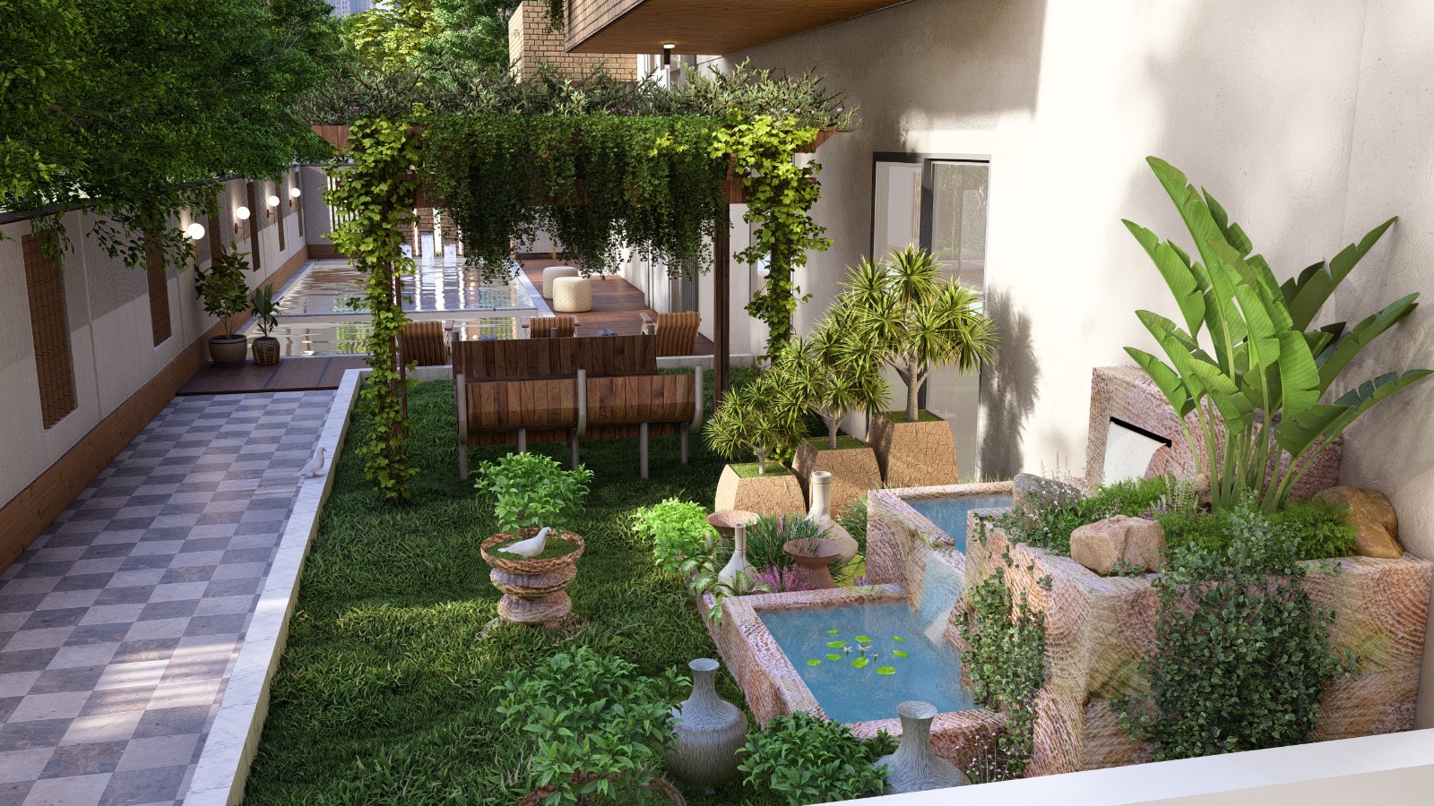 - Plumbing concealed in medium class C.P.V.C / P.V.C Pipes. All external plumbing, waste water pipes and storm water drains shall be in combination of PVC and Stoneware pipes