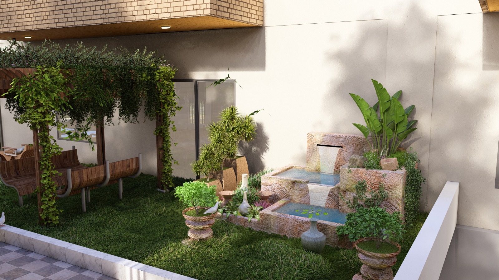 - Clay tile flooring for Balcony and Utility